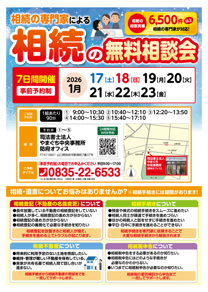 山口・小郡・防府で相続の無料相談会を開催!